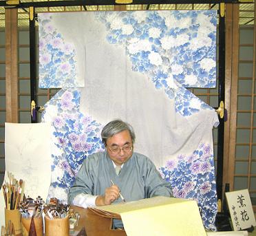 京友禅は、数多くの工程を経て初めて完成されます。現在、多くの場合、各工程は熟練の専門職人の手で分業化されていますが、私の工房は、代々伝承されてきた手描友禅の技術を生かし、多くの工程を一人で一貫して制作しております。